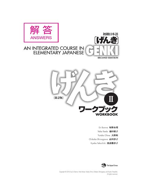 Download genki 2 second edition workbook answers Epub online is a convenient and frugal way to read genki 2 second edition workbook answers you love right from the comfort of your own home. Yes, there sites where you can get Epub "for free" but the ones listed below are clean from viruses and completely legal to use.